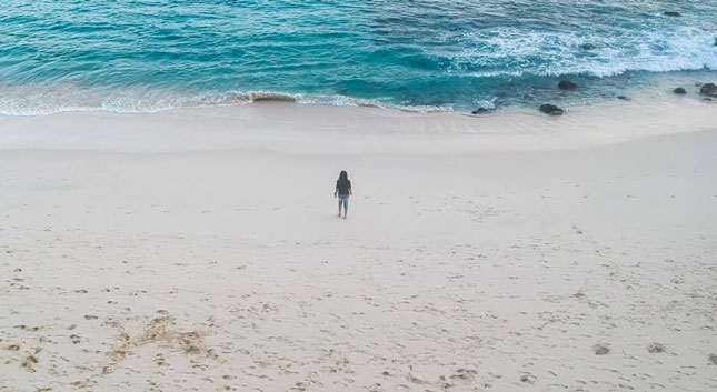 Udara di sini segar dan suasananya hening. Hanya ada keriap ombak yang pecah menabrak bibir pantai yang membentang luas. Sejauh mata memandang, tak ada hal lain selain kecantikan alam yang menghipnotis. Lautnya pun kemilau, kadangkala tersipu malu dipeluk matahari hangat.